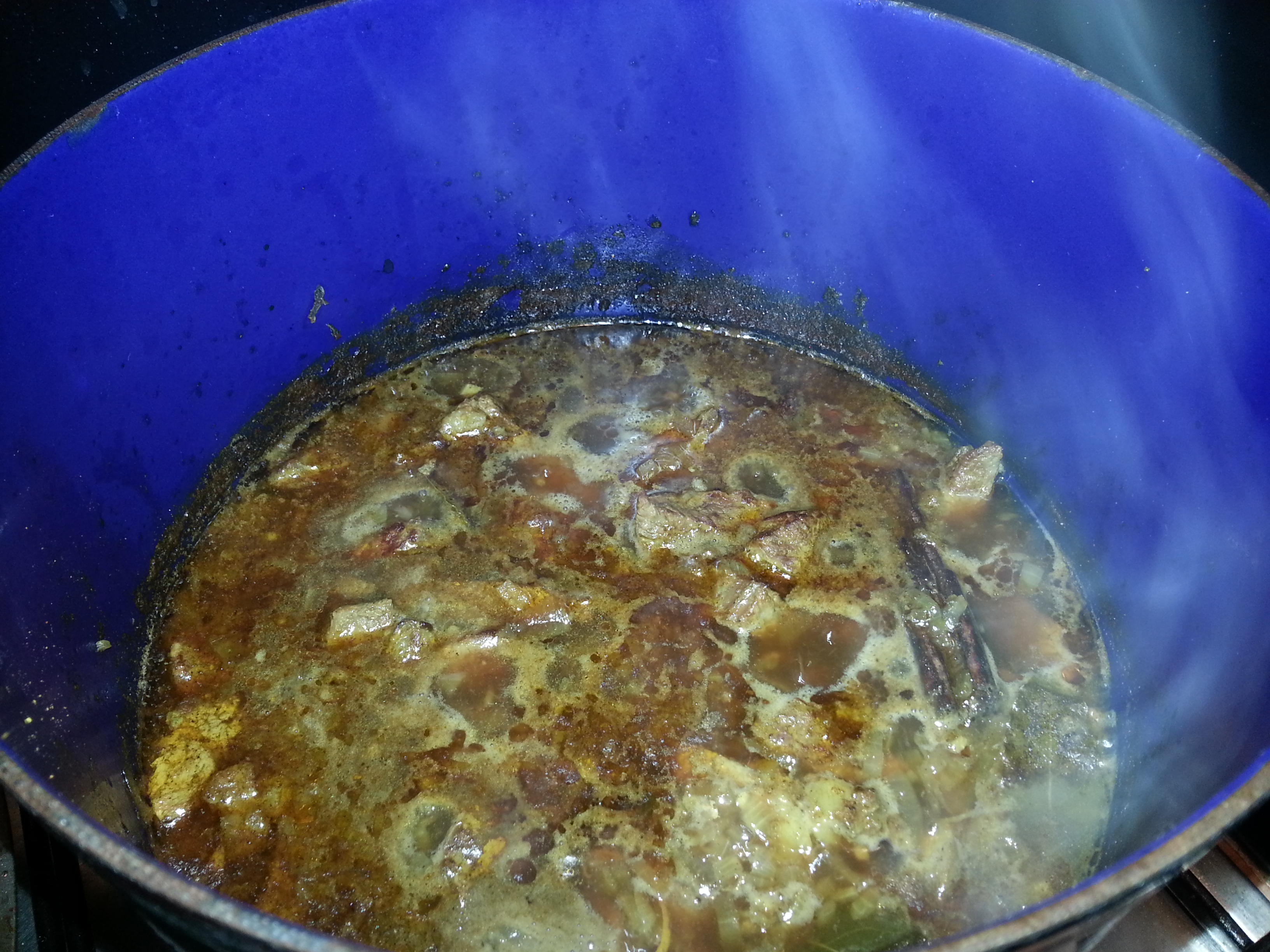 Melt the remaining 20 g butter in a saucepan and cook the sliced mushrooms until tender and add some lemon juice. Put them in the big pot together with the meat and vegetables and warm again.
